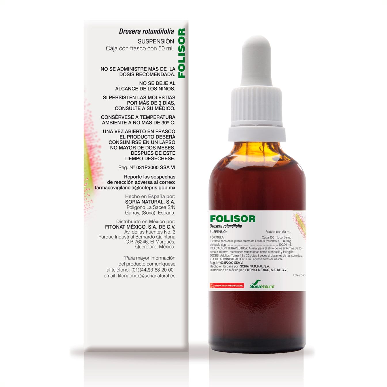 Medicamento HerbolarioFolisor es un medicamento herbolario con Drosera rotundifolia, auxiliar para el alivio de los síntomas de tos seca e irritativa, afecciones respiratorias como bronquitis y faringitis.